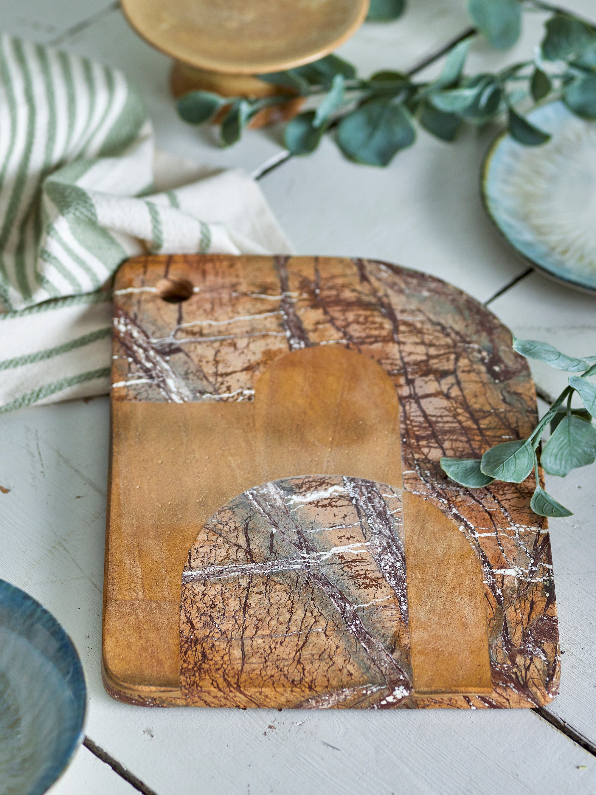 „Abrianna“ pjaustymo lentelė iš Bloomingville derina funkcionalumą ir natūralų, elegantišką dizainą. Pagaminta iš marmuro, ji pasižymi unikaliu raštu, primenančiu medžio tekstūrą, todėl suteikia stalui kaimiško žavesio ir prabangos pojūtį vienu metu.